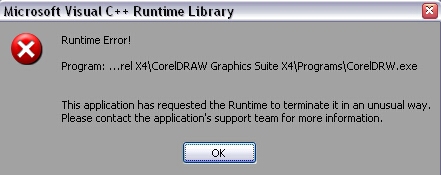 W ten sposób poleciała w niebyt aplikacja, która korzysta z tych samych bibliotek c++, co Corel, i która być może je nadpisała.