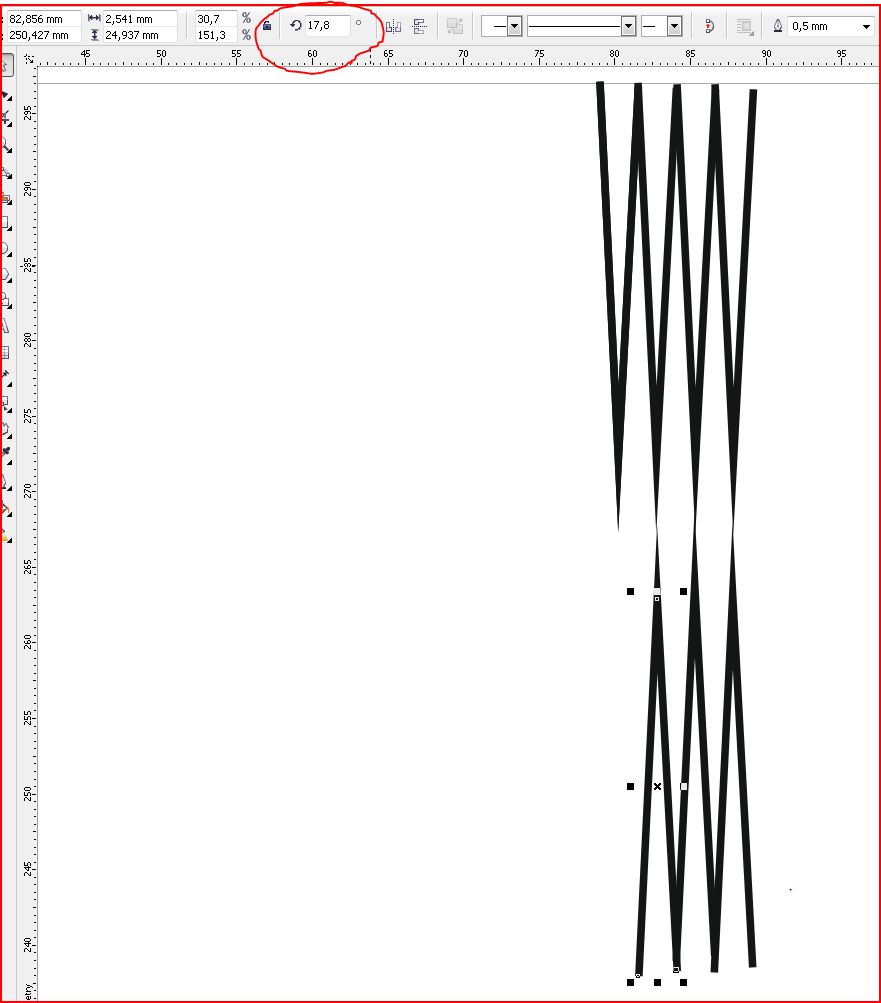 Wyszło to mniej więcej dobrze ale napisz mi jak zrobić te linie przesunięte względem siebie o kąt 7 stopni i jak się ustala długość która ma być 2,5 cm. Grubość lini zmniejszę do 0,5 pkt