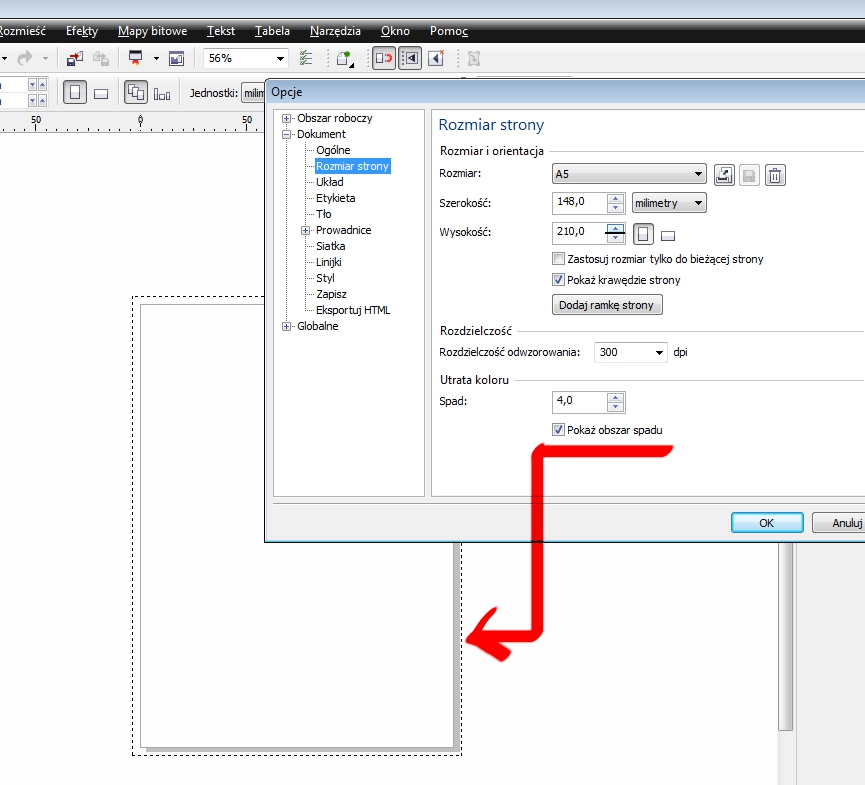 Sorry, ale dlaczego jak tworzę nowy projekt i w ustawieniach Corel Draw podaję takie dane: