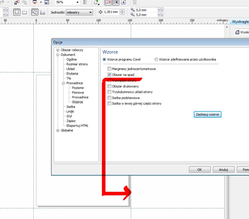 Mam wymiar strony, jest to np. A4. I teraz chciałbym sobie linijkami, czy tam prowadnicami porobić linie na projekcie, aby potem do tych linii dociągały mi grafiki jakie zaimportuję.