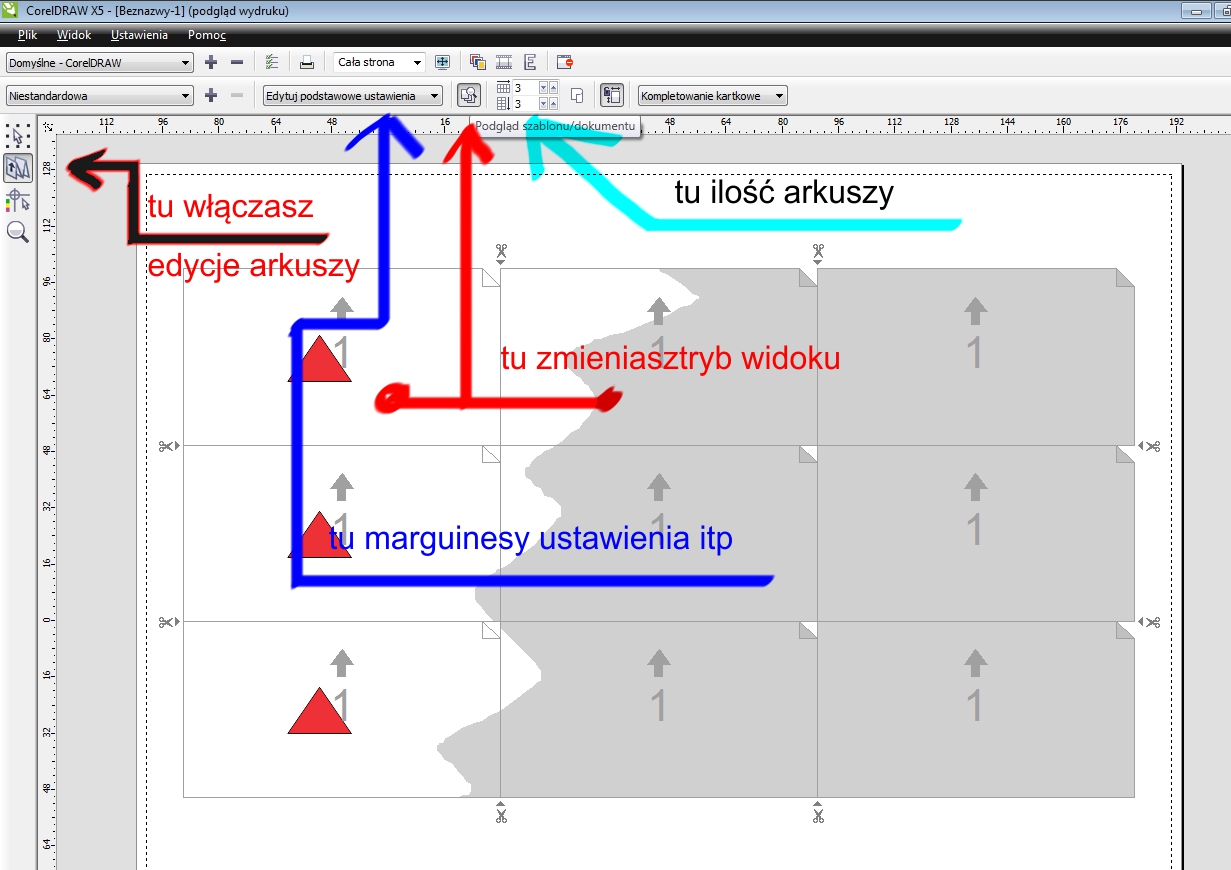 Jak mam sprawić aby mi się graficzka nad która pracowałem, powieliła na te trzy rzędy. Nie wiem jak sprawić aby na podglądzie wydruku z jednego małego obrazka na środku, zrobiły się te trzy rzędy. Jak to zrobić? No przecież nie wiem.