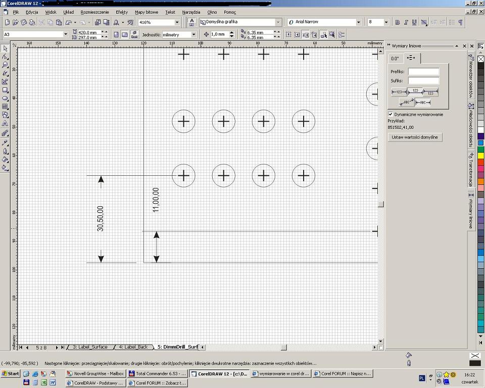 Urzywam Corel Draw v.12 i napotkałem problem z wymiarowaniem rysunku wektorowego.