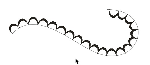 Chciałbym najkrótrzą drogą osiągnąć takie cudo jak na rys. "gotowy_efekt", mając do dyspozycji tylko dwa "obiekty" (drugi rysunek). Próbowałem bawić się metamorfozą, ale albo jej nie rozumiem (bardziej prawdopodobne), albo nie da się tego zrobić. Ja zduplikowałem kilka razy czarny łuk i później każdy oddzielnie dopasowywałem do ścieżki. Taki sposób pochłania sporo czasu np. przy setce takich łuków. Da się to jakoś szybciej rozłożyć na ścieżce? Jest coś takiego "dopasuj tekst do ścieżki", ale "dopasuj obiekt" nie znalazłem. Wielkie dzięki za pomoc.