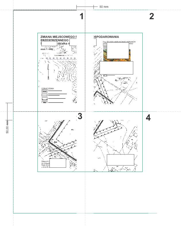 białe marginesy zasłaniają mi mapę , dlatego drukując następny kawałek przesuwam o 50 w odp kierunku