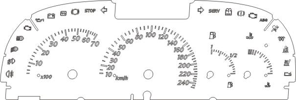 Chciałbym żeby te zegary wyglądały tak(skan08), tzn nie idealnie tak samo ale coś podobnego z tym że z kolorystyką podświetlenia z tych zegarów (skan callibra17). Podświetlę sobie to od tyłu na biało i z tym nie będzie problemu, chodzi mi tylko o przerobienie tej tarczy i z góry dziękuję wszystkim za pomoc. Słabo widać przy wskaźnikach kontrolki od rezerwy i temp ale po rozjaśnieniu są widoczne.