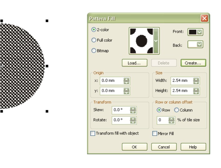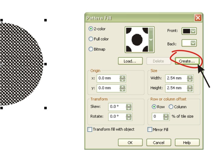 rysujesz kółeczko, zaznaczasz i klikasz Tools - Create - patter i wybierasz swoje opcje