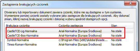 Poszukuję czcionek CastleTCE Light i Bold ze wszystkimi polskimi znakami. W sieci można nabyć te czcionki, ale nie ma wszystkich polskich literek - np. nie ma ą.