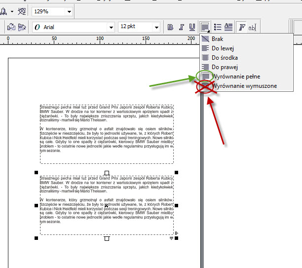 musisz miec zaznaczone "justowanie pełne" a nie "wymuszone" (patrz zalacznik)