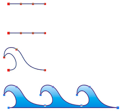 3. Przekształcasz w krzywą, węzły zamieniasz na "ostre" i bawisz się krzywymi ;)