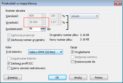 | Cytat: | | jeśli masz brak opcji "zachowaj rozmiar oryginalny" to występuje taka zależność jak wyżej |