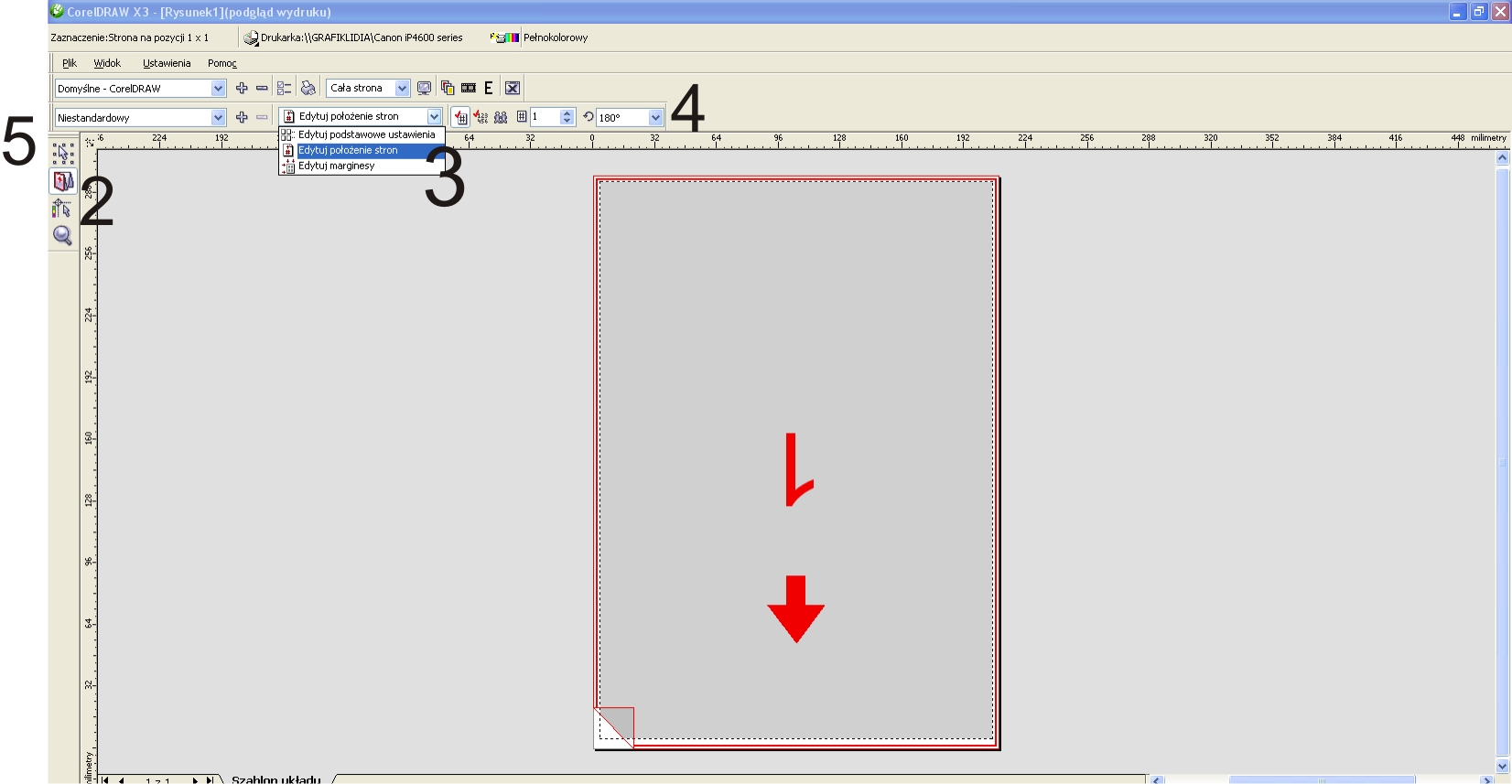 Jeśli chcesz mieć tylko podgląd zobacz w : Plik - Podgląd wydruku - Ustawienia - Ustawienia drukarskie .
