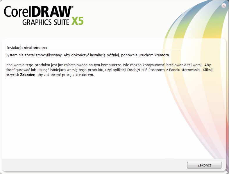 Po zakupie nowego komputera zaczął się problem, zainstalowałem wersję Corela X5 jednak podczas instalacji wystąpił jakiś błąd i nie udało się jej dokończyć. Prawdopodobnie coś się zainstalowało, jednak usunąłem rejestr oraz foldery wszystkie. Po odpaleniu instalki raz jeszcze wyskakuje mi komunikat taki jak widać w załączniku. Ma ktoś jakiś pomysł jak zainstalować program?