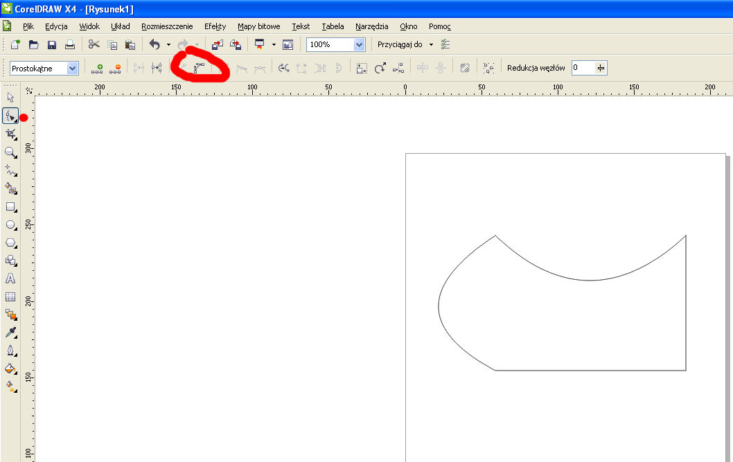 Przekształcasz na krzywe jeśli nie są już przekształcone, następnie zaznaczasz całość narzędziem kształt i klikasz na zaznaczony na rysunku łuk .