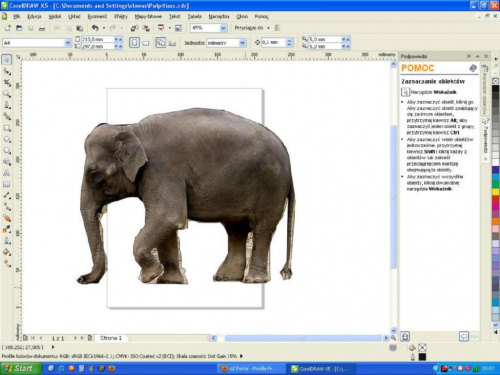 mozesz tez obrysowac slonia w Corelu Draw za pomoca krzywych beziera a nastepnia przy pomocy szybkiego kadrowania wpisac slonia w obrys