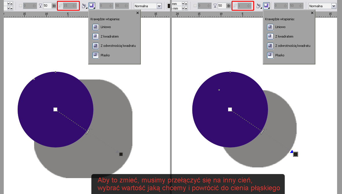 Abstrahując już od tego, że to cieniowanie w ogóle jest zepsute, bo wiele razy nam pole wyboru wtapiania cienia robi się wyblakłe jeśli wybierzemy jakiś jego rodzaj z drugiego menu po prawej stronie. Wtedy nie możemy edytować cienia wtapiania, musimy się wrócić do innego cienia, ustawić wtapianie jakie chcemy i potem wybrać to co chcemy, bo wtedy cień sie ustawi z takim wtapianiem i także zrobi wyblakły. I robić na czuja trzeba. Co za!