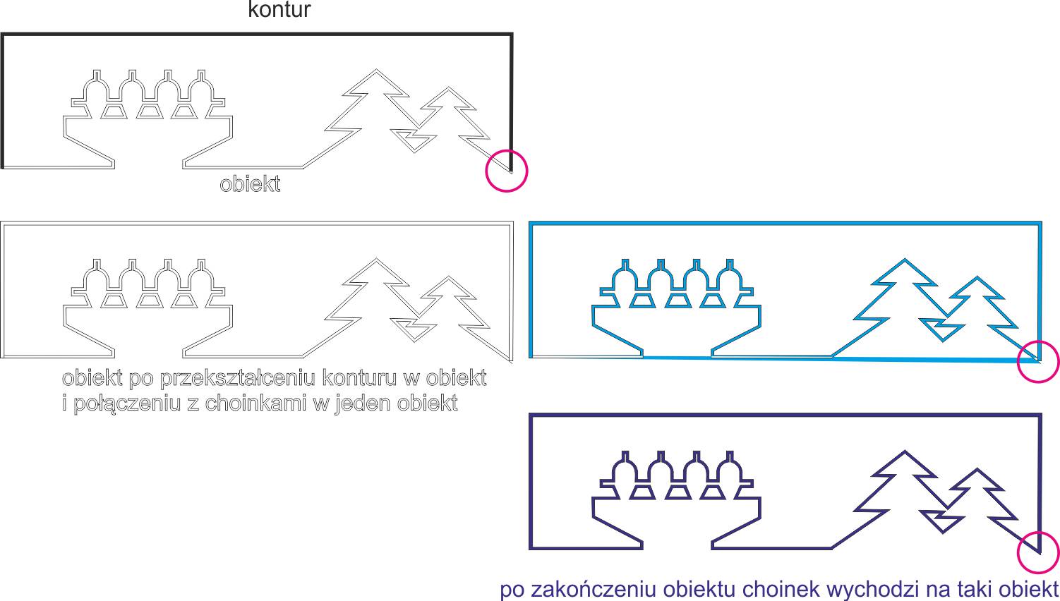 kształt choinek nie jest dokładnie zakończony i po jego zamknięciu mamy "dobry" obiekt.