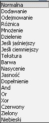 F-Głowy, jak zerkniesz i spróbujesz się wgłębić w opisy tych trybów to będziesz jeszcze mniej wiedział niż na początku. Najczęściej są to pewne funkcje matematyczne które w jakiś sposób obliczają nowy kolor operując na kolorze jednego i drugiego obiektu oraz stopnia przezroczystości. To najczęściej bardzo trudno opisać w kilku zdaniach, a co dopiero nazwać w jednym słowie. Najczęściej po prostu chcąc uzyskać jakiś efekt należy po kolei stosować wszystkie tryby i wybrać ten który robi to o co Ci chodziło. Jak zrobisz dany efekt kilka razy, to już będziesz wiedział, który tryb masz znowu wybrać.