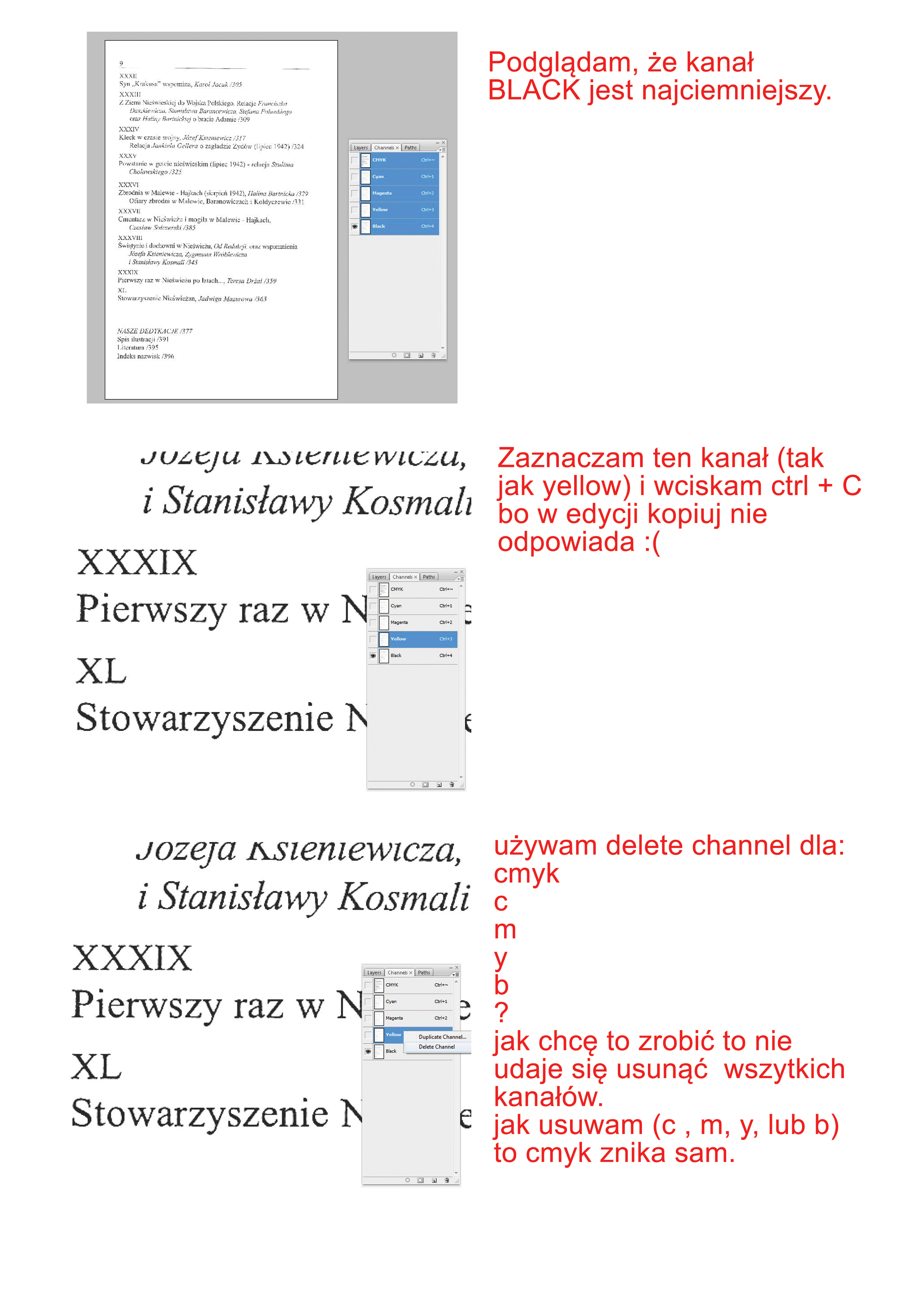 ja tez w ps robię. Tylko że jak skopiuję: ctrl+C i usunę wszystkie kanały to nie mam już gdzie wkleić ? I nie mogę usunąć wszystkich kanałów ( jak na obrazku).