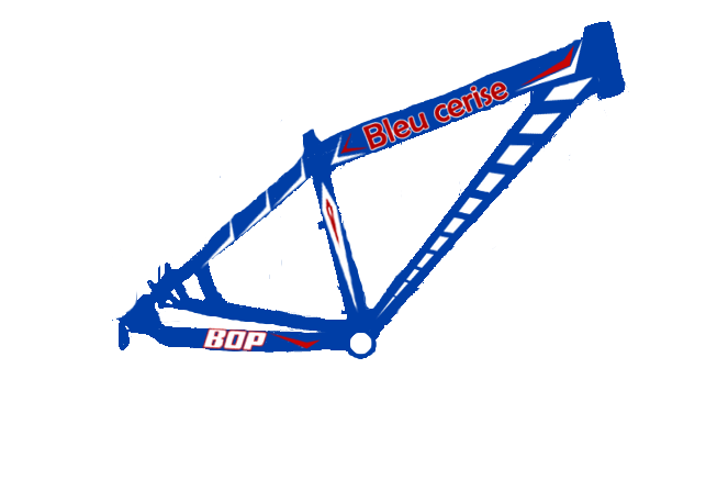 | font napisu"bleu cerise" to Berlin Sans FB wymiary napisu to mniej wiecej 20x5cm, font napisu "BOP" nie wiem jaki to, logo pochodzi ze strony: http://www.bopbikes.com/bop/Firma wymiar to mniej wiecej 3x6 nie wiem czy cos wiecej jescze podac ? |