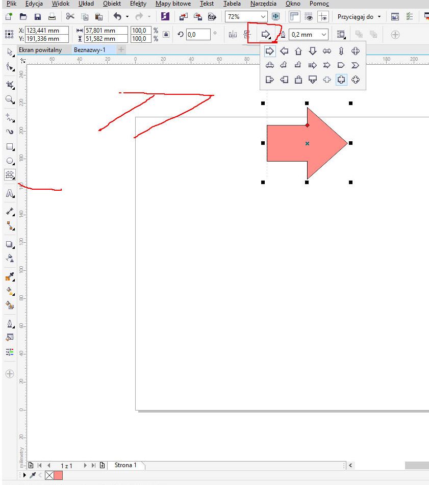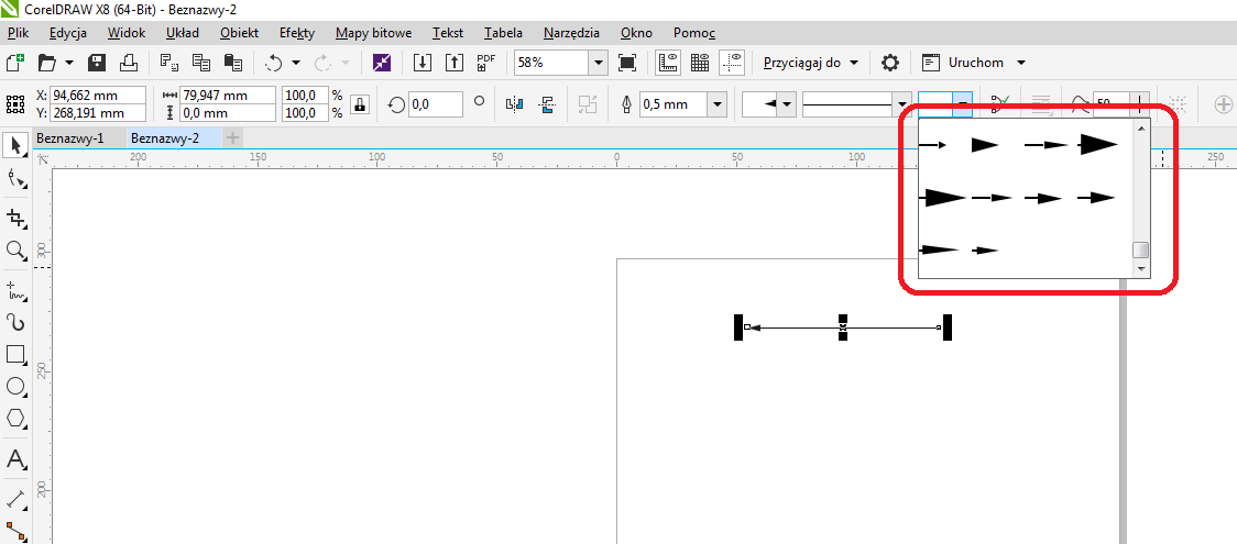 CorelDRAW X8 - Koniec strzałki