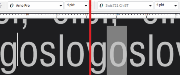 Problem jest następujący. Jest tekst. Akapitowy. Potrzeba w tym tekście zmienić czcionkę na coś innego niż Arial czy Times New Roman. Więc na przykład zmieniam czcionkę na Swiss 721. I taką mam w okienku zmiany czcionek. Gdy jednak postawię kursor w obrębie tekstu w okienku pojawia się ArnoPro. I jeśli coś dopisze, to będzie to napisane już tą czcionką.