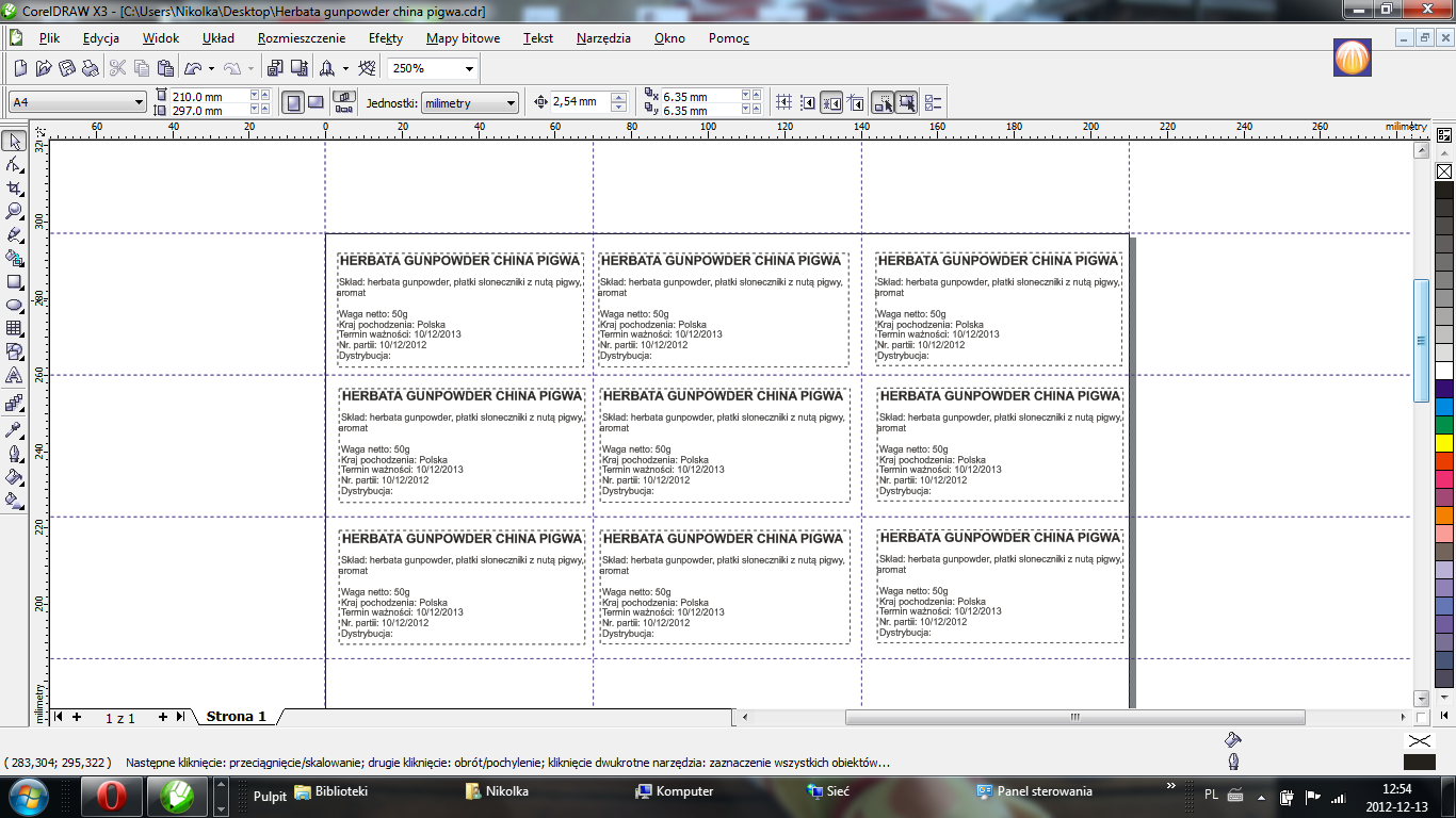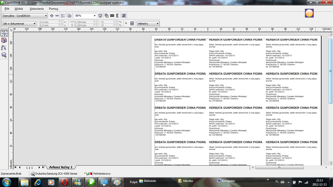W ogóle to źle się do tego zabierasz, jeśli to jest etykietka to zrób stronę jej wielkości i zrób impozycję (rozmieszczenie) w podglądzie wydruku.