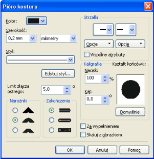 W opcjach "pióro konturu" masz możliwość zmiany narożnika oraz zakończenia.