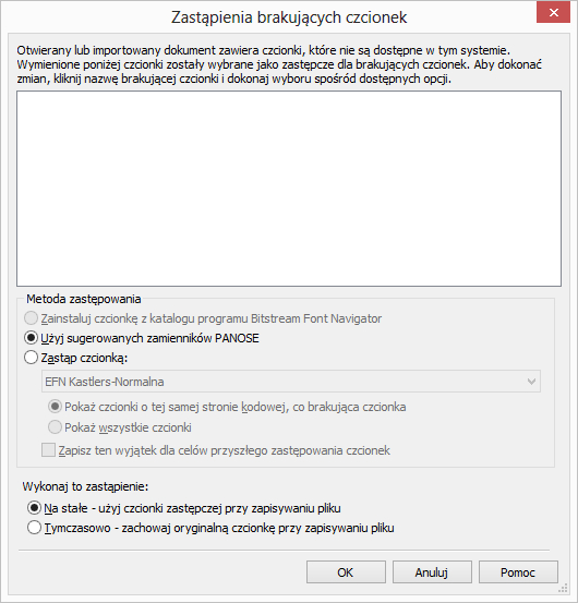 Próbowałem również używać bisream font navigator z corela 12 ale również ze złym skutkiem
