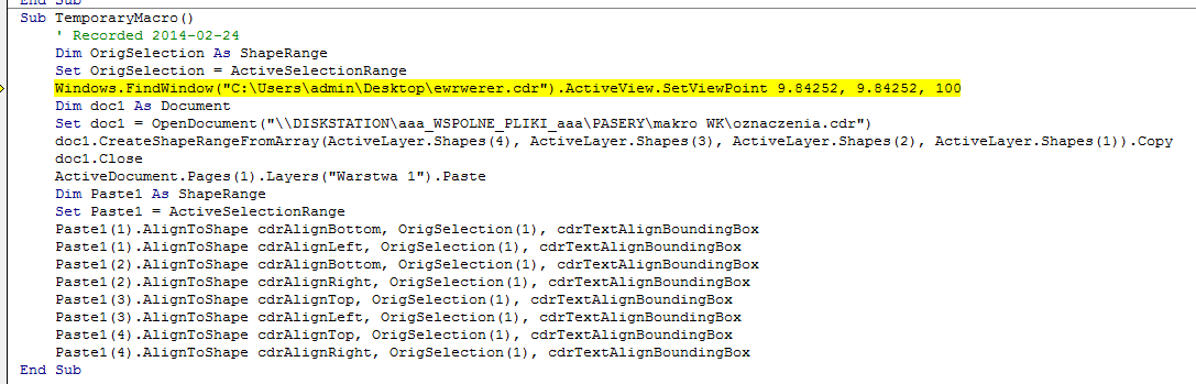 Makro przygotowałem w Corelu za pomocą opcji nagrywania.