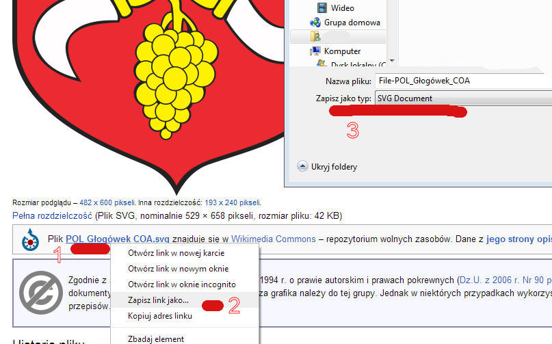 Wszystko co zrobił, to kliknął prawym klawiszem obrazek w Wikipedii, wybrał polecenie zapisz element docelowy jako… Następnie uruchomił Corela i zaimportował zapisaną grafikę.