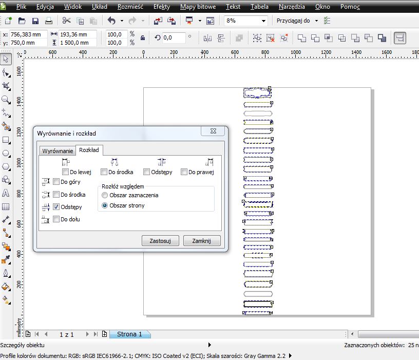 Wysłany: 25 Wrzesień 2013, 06:57 Corel Draw X4 - równomierne rozmieszczanie grup wektorów