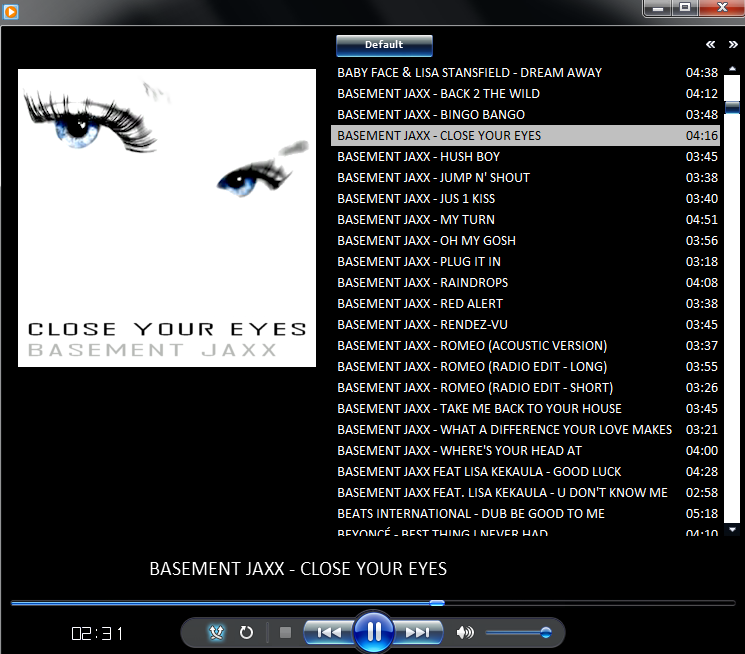 Tak to właśnie ma wyglądać, ma być szablon. Zmieniam tylko napisy, kolory czcionek i tła napisu. Okładki wyświetlają się na komputerze. Tak przerobiłem skórkę AIMPa, że pole na wyświetlaną okładkę ma rozmiar dokładnie 300x300. Oczywiście pliki przerzucam też do przenośnego odtwarzacza, ale wyświetlacz jest mały, więc i tak niewiele widać.
