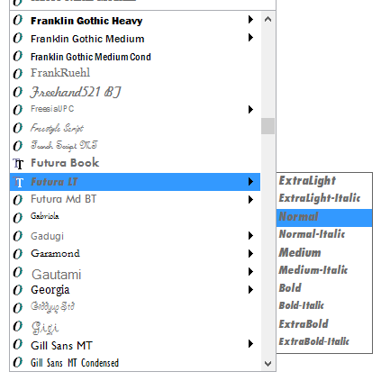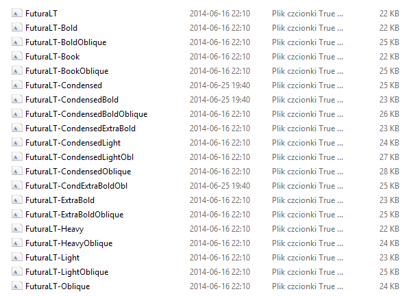 Teraz mam problem z czcionkami. Zainstalowałem całą rodzinę FUTURA -> załącznik