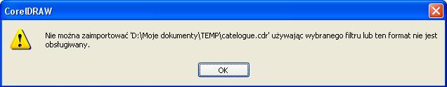 " Nie można zaimportować pliku zzz.cdr używając wybranego filtru lub format ten nie jest obsługiwany"