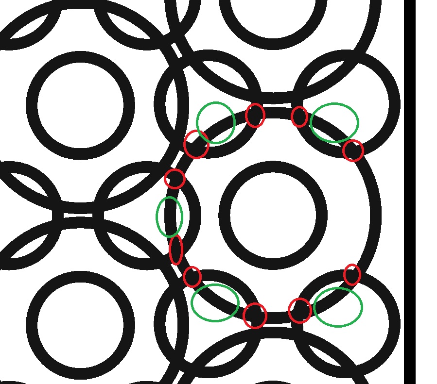 Chciałem się dowiedzieć w jaki sposób, z tych nakładających się na siebie okręgów stworzyć jeden obiekt. Miejsca przecinania krzywych- zaznaczone na czerwono- chciałbym żeby były miejscem łączenia- węzłów, a elementy zaznaczone na zielono, żeby zniknęły. Czy jest na to jakaś szybka metoda? A jeżeli nie to jak w ogóle się za to zabrać? Działam w corelu x5.