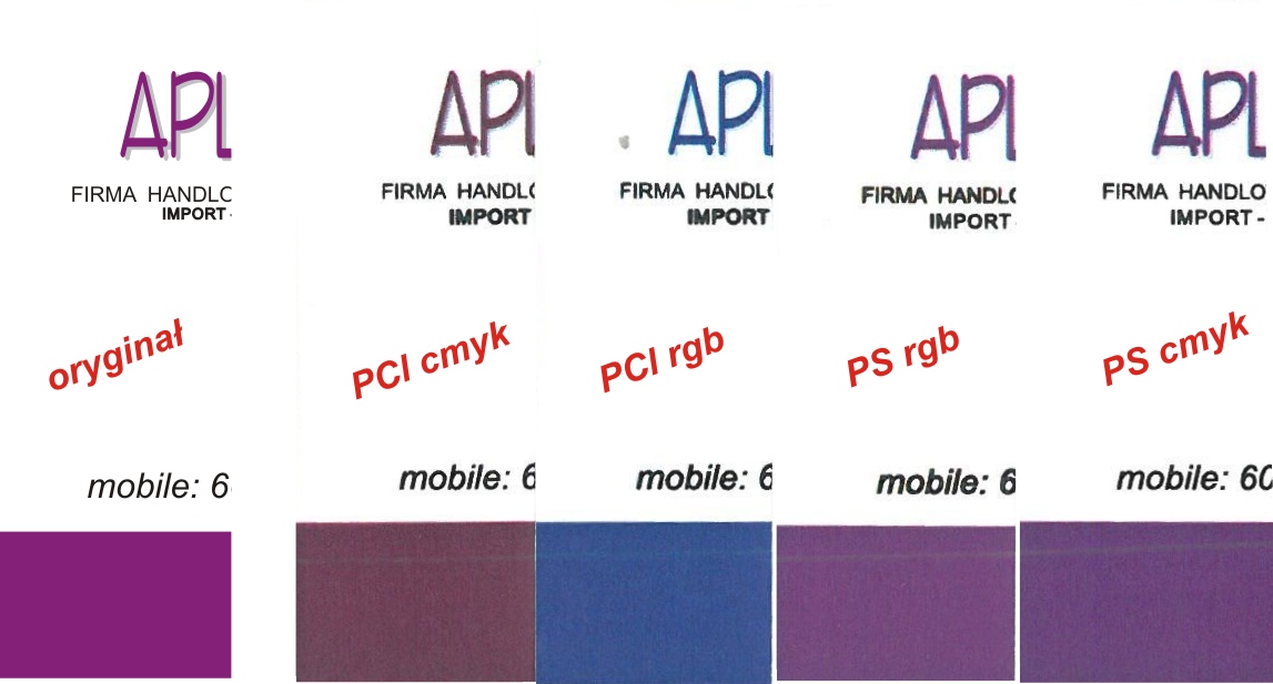 Różnice w druku cmyk-rgb/pcl-ps