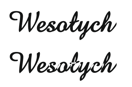 Wcześniej oczywiście trzeba je rozbić i podzielić na pojedyncze litery, ale załatwia to ctr+Q i ctrl+K. Trzeba zwrócić uwagę, czy np. nie zamieniło się liter (A, a, B, b, D, d, ę, g itd.) na poszczególne krzywe przez zbyt dużą ilość kombinacji ctr+K.