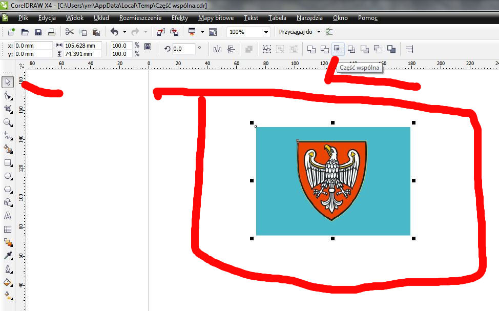 chciałbym wyciąć fragment ze zdjęcia , jak to można zrobić , próbowałem narysować okrąg na danym fragmenmcie ale nie działają te ikonki typu - wytnij, częśc wspólna itp ,