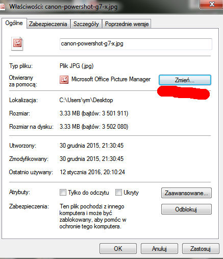 Wybierz w miejscu które podkreśliłem czerwoną kreską (rozwijane menu )program graficzny.Ja mam przykładowo Microsoft Office Picture Manager ,ale możesz wybrać inny który masz zainstalowany.