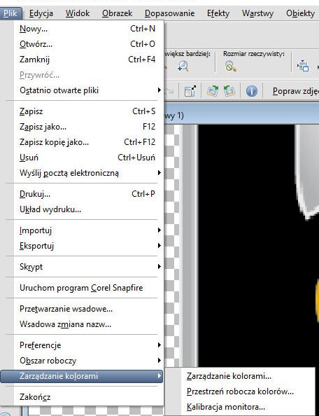 2. Wybierz kolejno Plik Zarządzanie kolorami Zarządzanie kolorami.