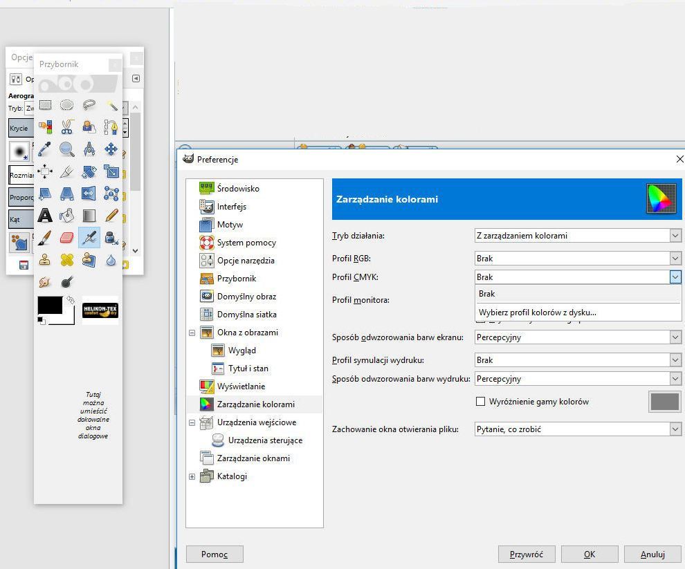 Aby zdefiniować przestrzeń roboczą kolorów i profil CMYK