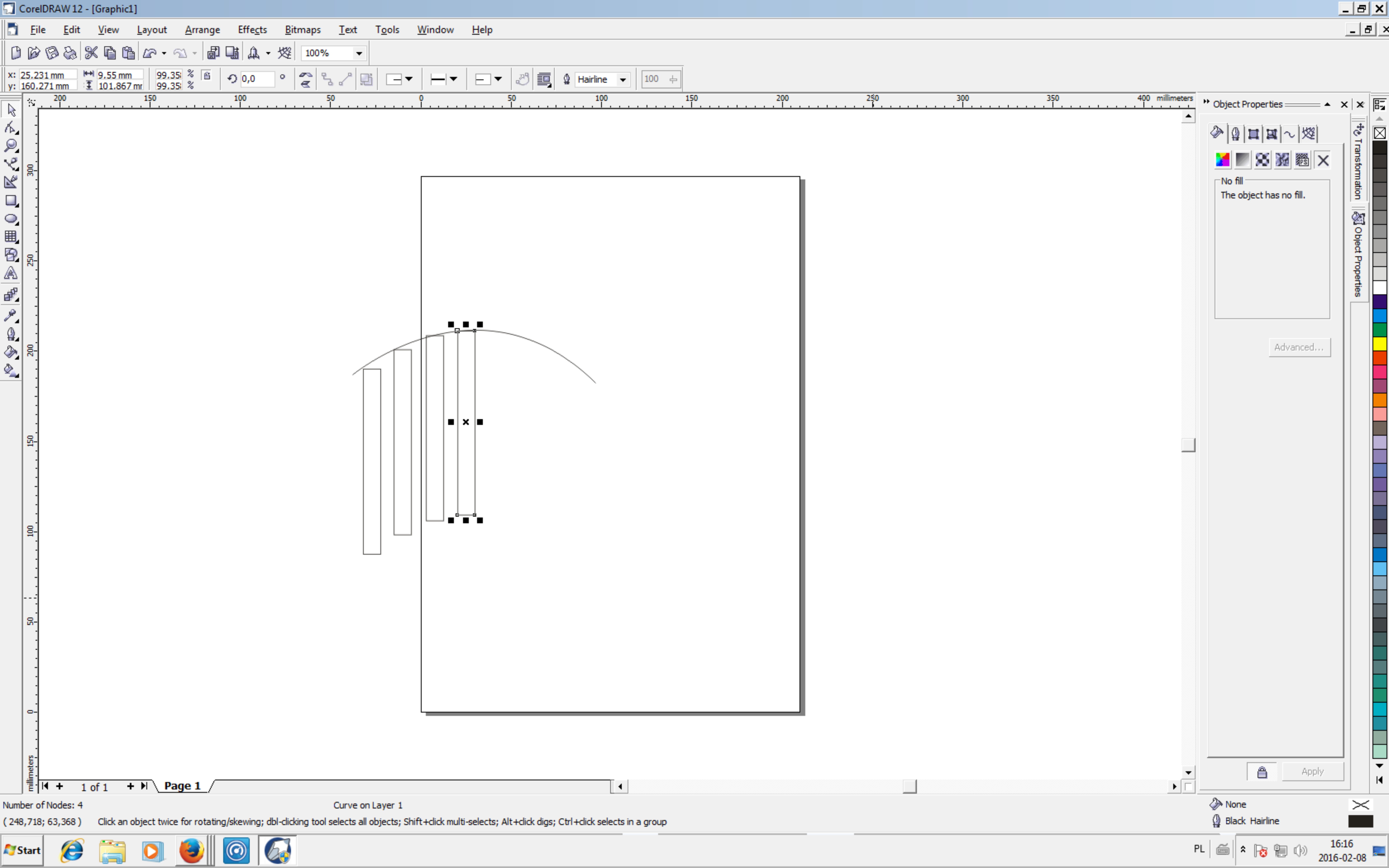 4. Włącz narzędzie KSZTAŁT i zaznacz wszystkie dolne węzły poza skrajnym a następnie mając wciśnięty Shift zaznacz też go