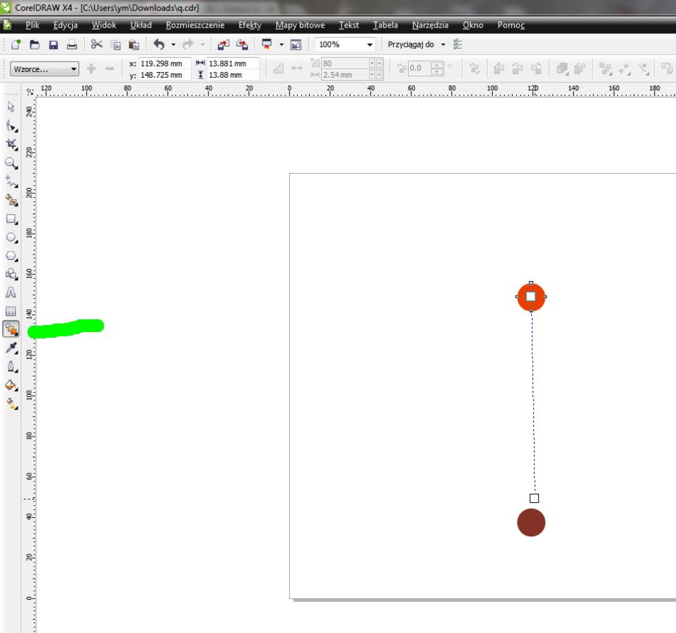 Zaznaczasz metamorfozę ,następnie jedno z kółek wskaźnikiem i trzymając wciśnięty lewy klawisz myszy przeciągasz do drugiego .