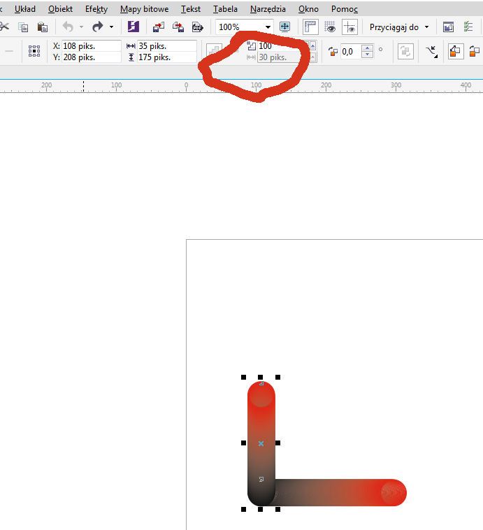 Rysujesz dwa kółka pierwsze w kolorze czerwieni ,drugie w najciemniejszym kolorze projektu. Narzędziem Metamorfoza łączysz je ze sobą (na górnej belce wybierasz odpowiednie paramenty,w tym wypadku wpisujesz ilość kółek . Klawiszem Enter zatwierdzasz) Możesz ten projekt zrobić na dwa sposoby .W taki sposób jak ja (dodałem prostokąty i zespawałem z kółkami ) lub odpowiednio więcej dodać na górnej belce kółek .