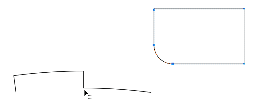 Problem w tym, że po zaznaczeniu węzła narożnika (w opisywanym kształcie) oraz wybraniu tej samej opcji nic się nie dzieje. Próbowałem zaznaczyć wszystkie węzły, nawet zamknąć krzywą do postaci figury jednak nic to nie daje. Być może jest jakaś zasada co można zaokrąglić, czego nie. Być może powinienem zaznaczyć lub utworzyć jakieś dodatkowe węzły - tego niestety nie wiem.